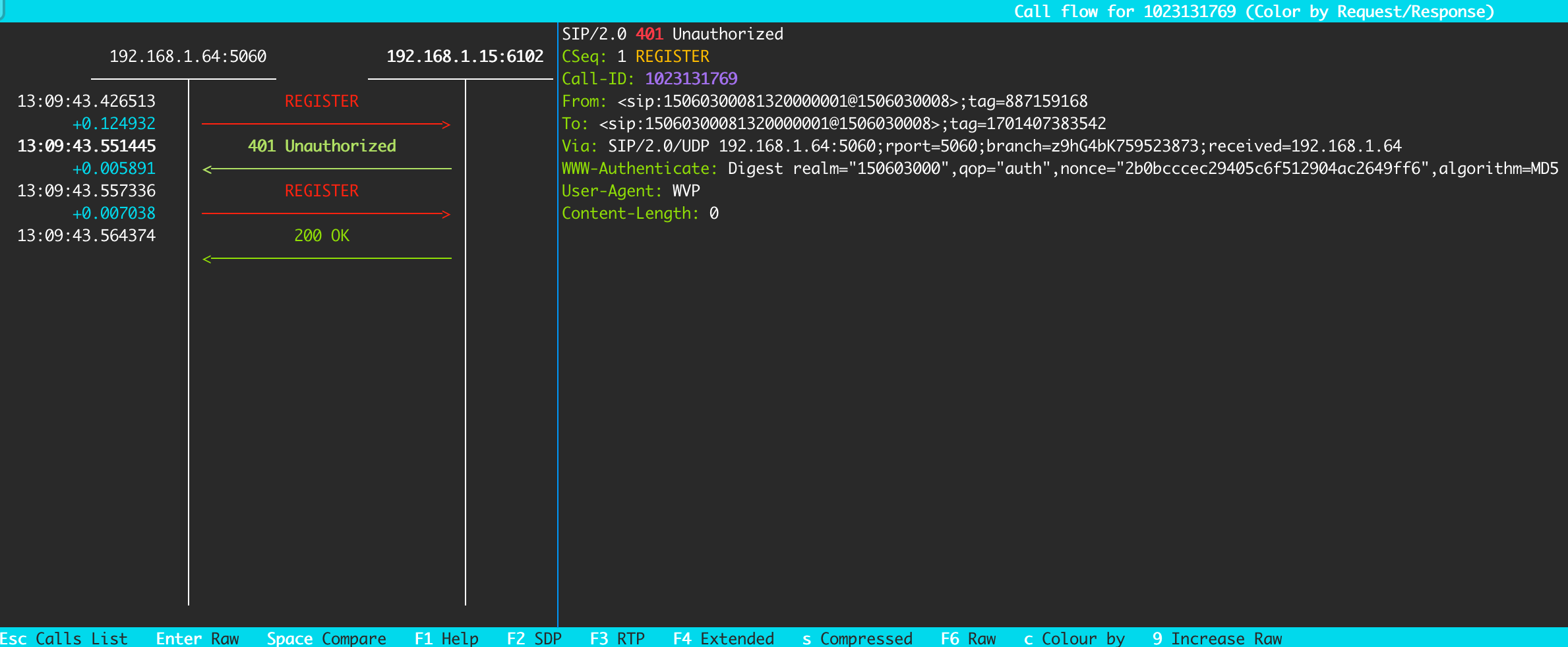 REGISTER注册请求,此时请求中未包含Authorization身份认证字段; - 1.2、Java服务向摄像头,发送响应